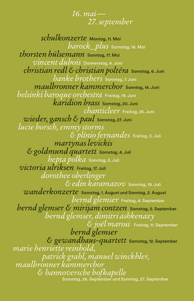 Heuchelberg rund um Maulbronn. Zugleich entsteht unterwegs Raum für Begegnungen und persönliche Gespräche zwischen Ausführenden und Publikum.
