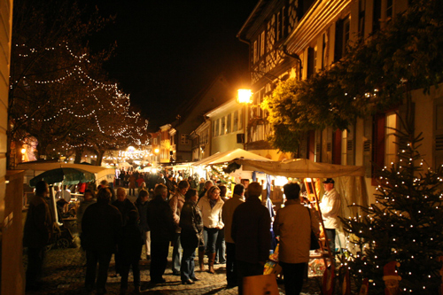 Die Palette der kulinarischen Spezialitäten reicht weit und die Glühweine der einheimischen Winzer stehen bei den Besuchern des Vogtsburger Weihnachtsmarktes in der Gunst besonders hoch.Und nicht genug: parallel dazu findet am Burkheimer Schloss das mittelalterliche Markttreiben, das Mittelalterspektakulum, statt.